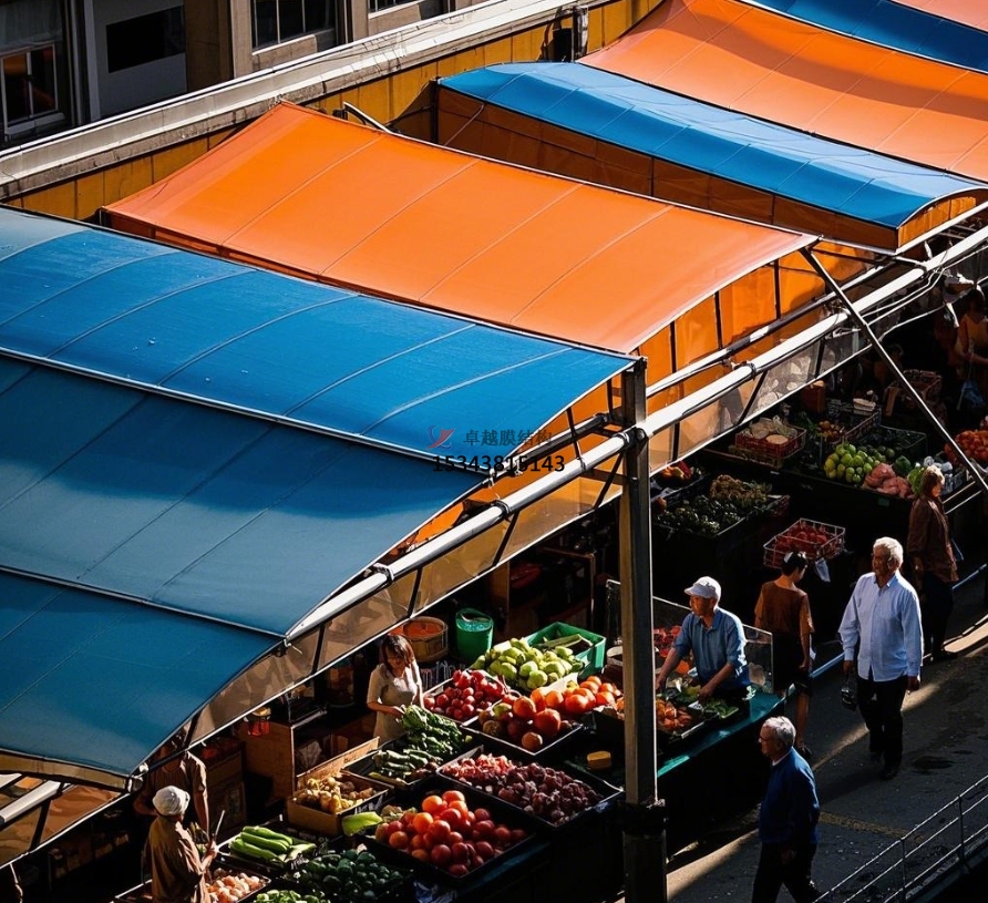 在城市的煙火氣味中,農(nóng)貿(mào)商場是不可或缺的存在,它承載著新鮮食材的匯聚與居民日常生活的快捷。但是,傳統(tǒng)農(nóng)貿(mào)商場頂棚在長期運用中暴露出許多問題,如年久失修易漏雨、空間布局局促、外觀陳腐等。膜結(jié)構(gòu)頂棚的出現(xiàn),宛如一陣清風(fēng),為農(nóng)貿(mào)商場帶來了全新的生機與革新。