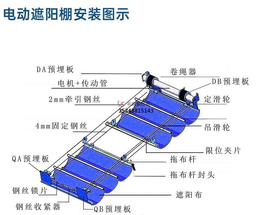 幼兒園FCS折疊遮陽(yáng)天棚即使用管狀電機(jī),利用鋼絲循環(huán)運(yùn)動(dòng),從而帶動(dòng)面料收放,達(dá)到遮陽(yáng)的效果。FCS折疊遮陽(yáng)天棚機(jī)構(gòu)分為傳動(dòng)和面料兩大部分:上方傳動(dòng)部分的另一端為動(dòng)力端,利用管狀電機(jī)旋轉(zhuǎn)帶動(dòng)卷管及固定在卷管上的卷繩器旋轉(zhuǎn)從而是一根鋼絲繩進(jìn)行收放。傳動(dòng)部分的另一端為滑輪鋼絲通過(guò)滑輪進(jìn)行換向,使一根鋼絲的兩端能同時(shí)固定卷繩器上,并且鋼絲始終保持繃緊。面料部分的上半部分是一根兩端固定并繃緊的鋼絲(天棚簾跨度過(guò)大的改用滑動(dòng)門軌),下半部分為面料,面料從頂端開(kāi)始安裝牽引桿,間距等分(通常為0.8米左右)。牽引桿上安裝流動(dòng)滑輪,滑輪在固定在鋼絲上運(yùn)行。第一根牽引桿與傳動(dòng)鋼絲連接,在電機(jī)固定鋼絲展開(kāi)與收攏。