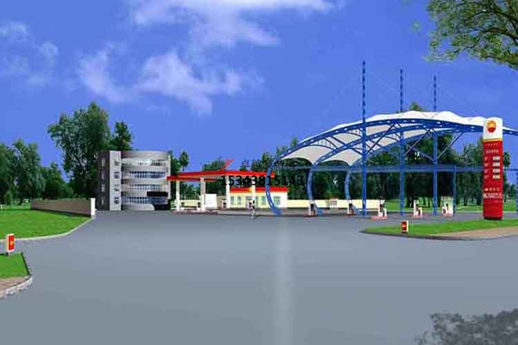 3、在改造原有建筑物時,膜結(jié)構(gòu)加油站加氣站的自重輕是很大的利益,可以用來代替?zhèn)鹘y(tǒng)的屋蓋。它也可用來銜接毗鄰的房子,例如在商場、廣場、學(xué)校中,這將有效地擴展其建筑空間。