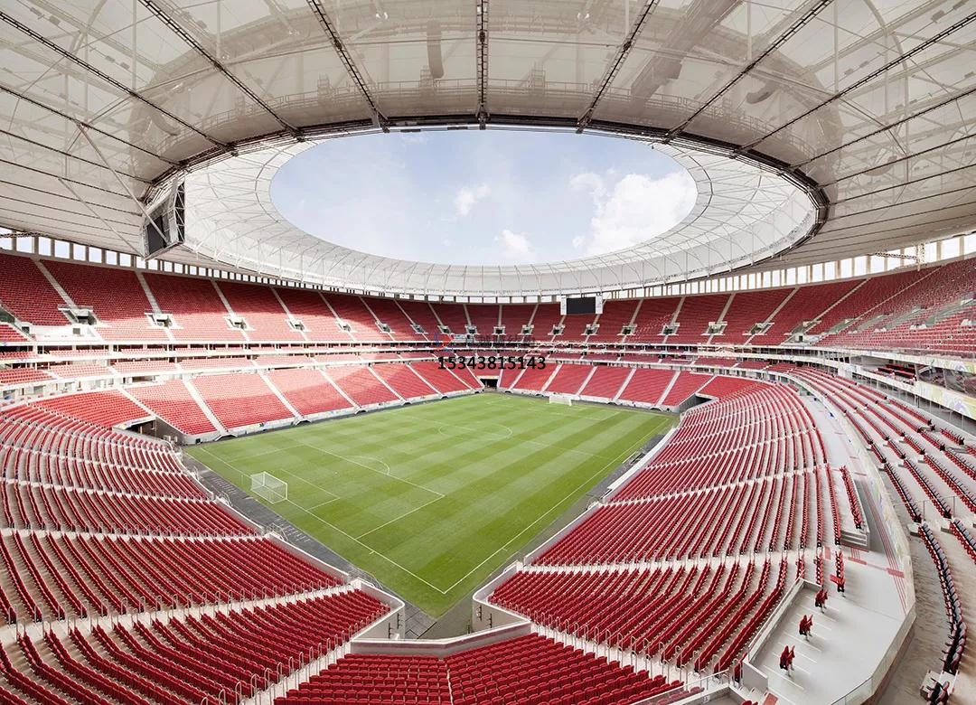 球場膜結(jié)構(gòu)景觀優(yōu)勢:球場膜結(jié)構(gòu)景觀具有輕質(zhì)高強(qiáng)、美觀獨特、耐用環(huán)保、透光透氣和空間利用最大化等多種優(yōu)勢。膜結(jié)構(gòu)材料質(zhì)量輕,能減輕球場基礎(chǔ)結(jié)構(gòu)的負(fù)擔(dān),降低地基承載要求,在施工中對場地影響小。同時,安裝和拆卸便捷,可縮短施工周期,提高效率。其造型豐富多樣,可根據(jù)設(shè)計需求塑造出各種獨特的曲面造型,如波浪形、弧形等,為球場增添現(xiàn)代感和藝術(shù)氛圍,帶來視覺盛宴。色彩和材質(zhì)選擇也較多,能夠滿足不同風(fēng)格球場的需求。采用的高強(qiáng)度薄膜材料具有優(yōu)良的耐候性、耐久性和抗紫外線性能,可確保長期使用。而且膜結(jié)構(gòu)在制作過程中采用環(huán)保材料,有利于減少環(huán)境污染,部分膜材還可回收再利用。優(yōu)質(zhì)膜材具有良好的透光性,白天能為球場提供充足自然光照,減少照明能耗,同時也能保證空氣流通順暢,營造舒適的空間環(huán)境。球場膜結(jié)構(gòu)景觀以其靈活的支撐體系和輕盈的膜面,能夠創(chuàng)造出開闊無柱的室內(nèi)空間,最大限度地提升場地利用率,滿足各種體育賽事和活動的需求。