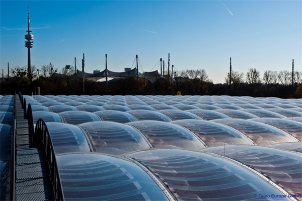卓越的透光性 – ETFE薄膜可以高度透明,并允許紫外線通過,紫外線負責促進光合作用,從而促進植物生長。太陽能控制/遮陽 – ETFE薄膜系統(tǒng)可在一層或多層上加入多種玻璃料圖案,以改變其太陽能性能。箔片印有各種標準或定制圖案。顏色可以通過各種方式引入,無論它是在薄膜擠出過程中應用,提供從紅色到紫色的各種色調的一致色調,或添加無限顏色選項的照明。彈性 – 雖然ETFE薄膜非常有彈性,但它們仍具有結構抗性。彈性/塑性極限的拉伸強度為21-23N /mm 2,但斷裂點的拉伸強度為52/Nmm 2。對于膜結構計算,通常保守地采用15 N /mm的極限。持久耐用 – 長期暴露于環(huán)境污染,紫外線,刺激性化學品或極端溫度變化,ETFE不會降解。聲學 – ETFE薄膜具有大約70%的聲學傳輸可持續(xù)/節(jié)能 – 從薄膜的擠出到運輸到現場,與其他類似的包覆材料相比,消耗的能量很少,從而減少了整體碳足跡。除此之外,產品的性質通過隔熱和采光增強了建筑物理,從而有助于建筑的全球低能耗。成本效益 – 由于ETFE的輕質特性,可以更有效地設計下部結構支撐系統(tǒng)和混凝土基礎。ETFE系統(tǒng)還提供充足的自然采光,從而通過降低對室內照明的需求來更小化能源成本。可回收 – 易于回收利用,來自制造過程的廢棄物甚至舊的ETFE元件可以重新制成新的ETFE產品,如管道部件,電線或鑄件。