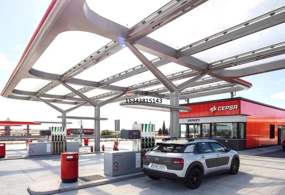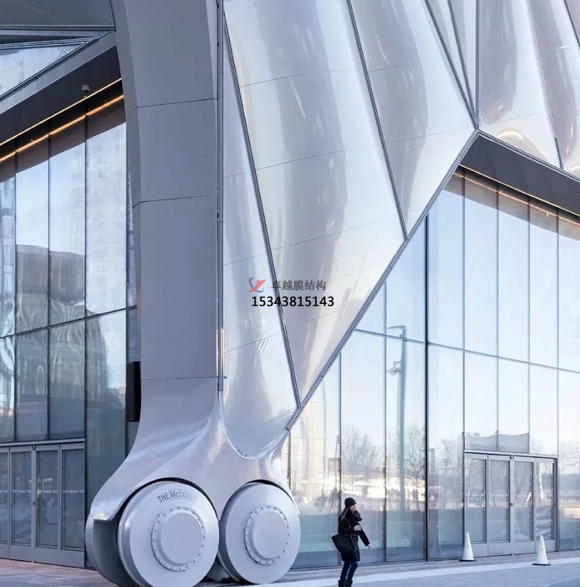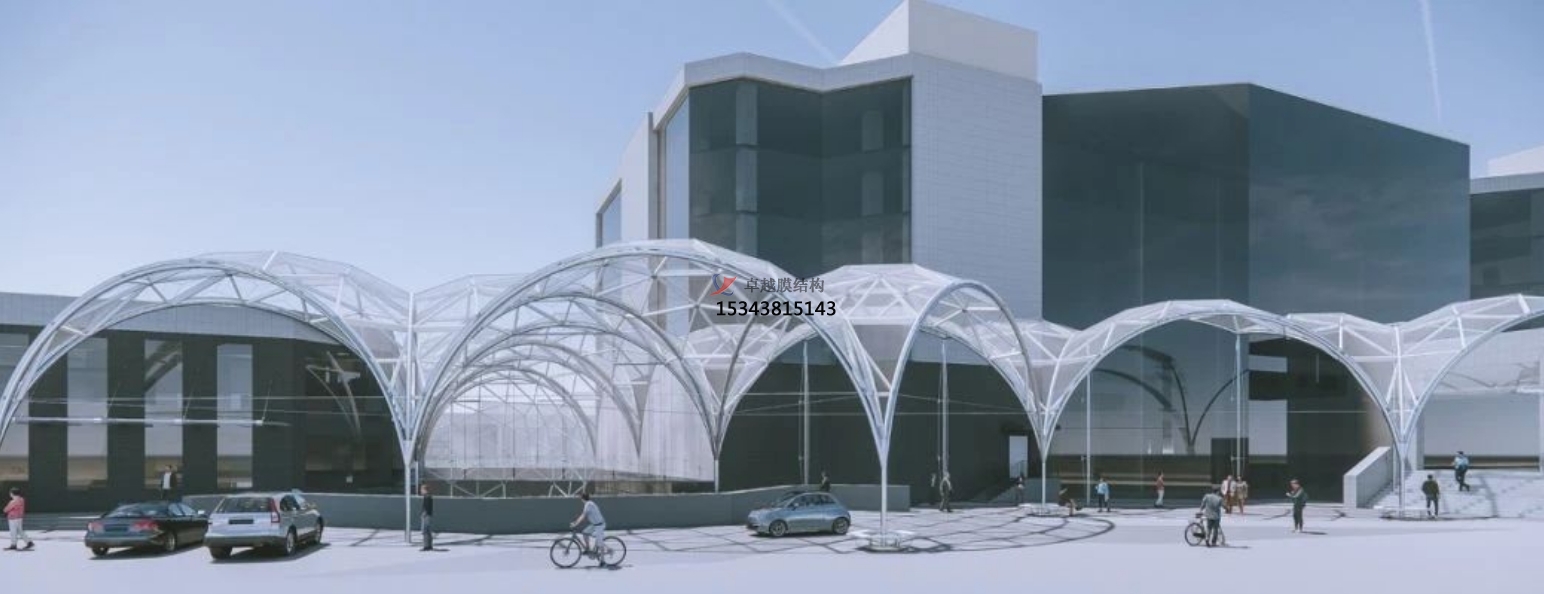 張拉式索膜結(jié)構(gòu)可以根據(jù)需要制成任意復(fù)雜曲面形狀,體現(xiàn)自然流暢之美;并有多種顏色的膜材可選,以適應(yīng)周邊的環(huán)境、滿足建筑效果要求;而且膜結(jié)構(gòu)質(zhì)量輕,一般不需要太龐大的支撐結(jié)構(gòu),這是其他建筑材料無(wú)法比擬的優(yōu)勢(shì)所在。