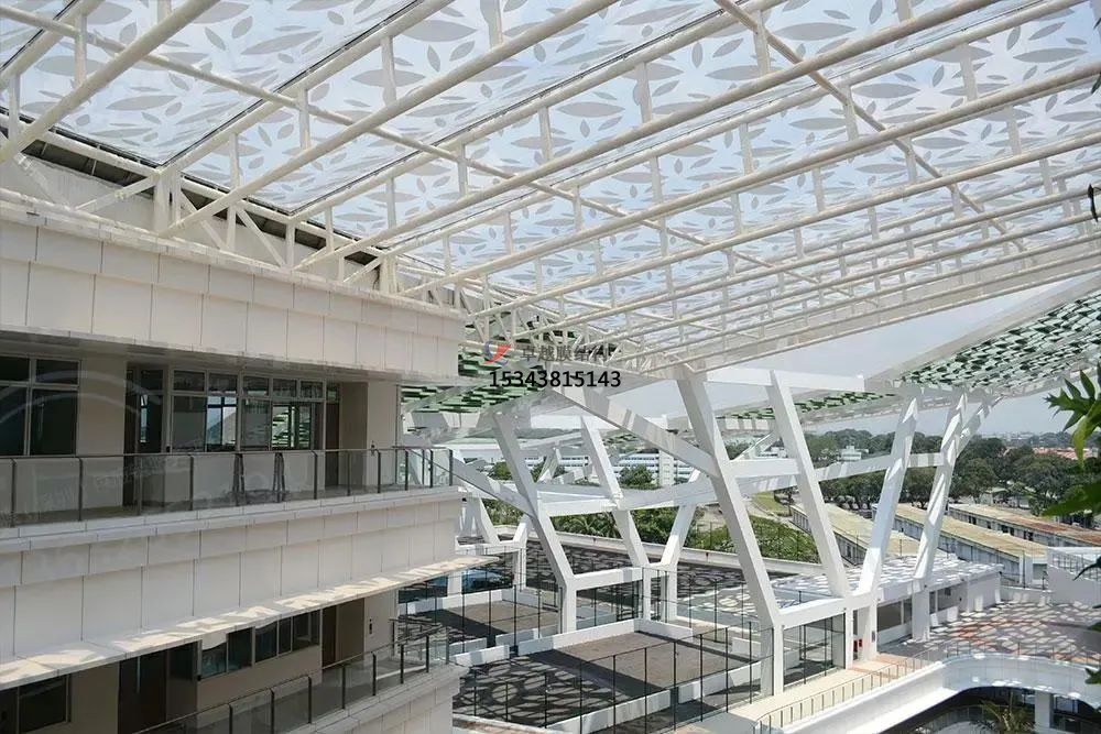 新加坡技術(shù)教育學(xué)院(ITE)校園內(nèi)的一系列ETFE屋頂是現(xiàn)代建筑想象力與創(chuàng)新力充分運(yùn)用,結(jié)構(gòu)范圍包括一對(duì)帶有定制印刷圖案的大型中庭,以及設(shè)置在建筑物之間的兩個(gè)較低的雙層ETFE氣枕結(jié)構(gòu)。
