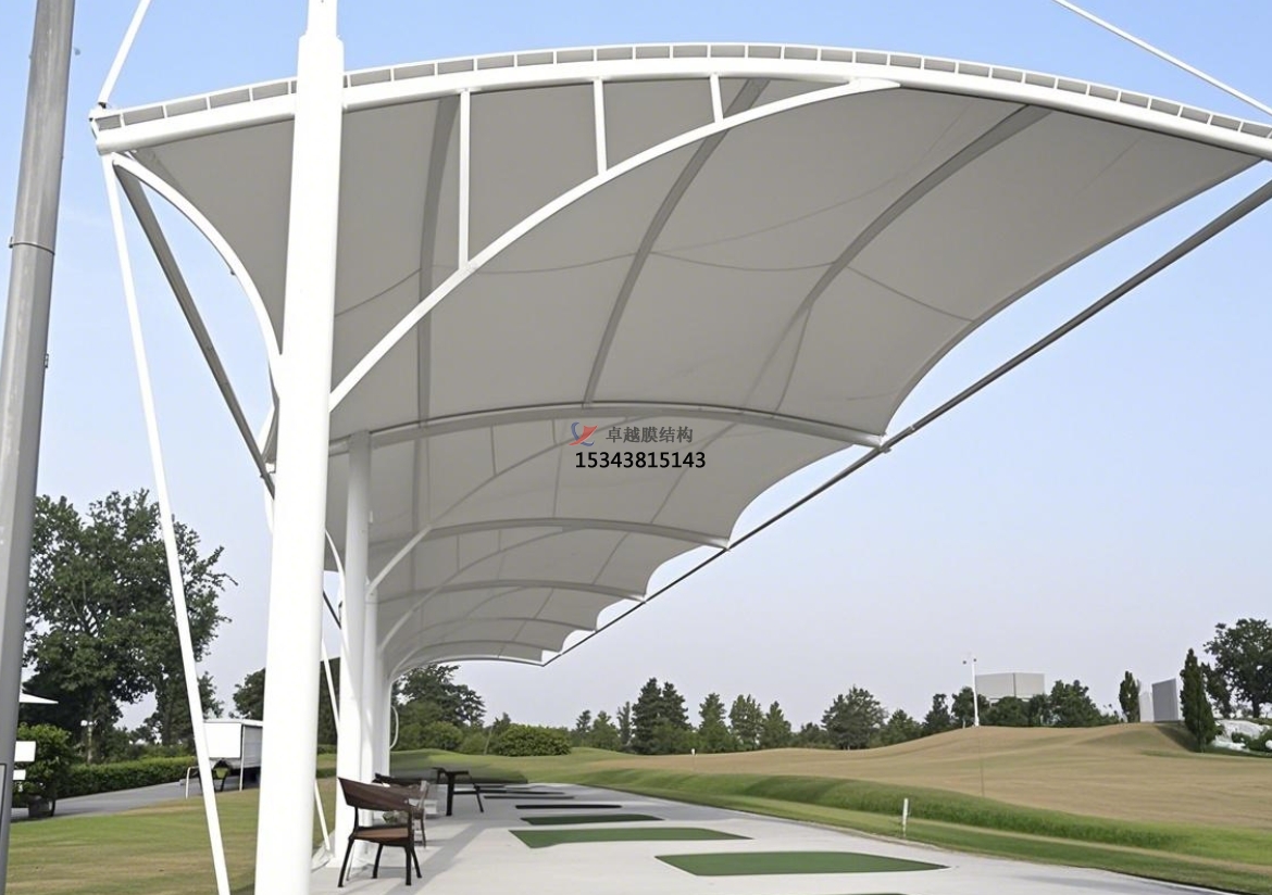 膜結(jié)構(gòu)資料具有杰出的柔韌性,可以依據(jù)不同高爾夫球場的全體風(fēng)格和規(guī)劃需求,塑造出豐厚多樣的造型。無論是流暢優(yōu)雅的曲線,還是簡潔妥當(dāng)?shù)闹本€,亦或是富有創(chuàng)意的共同形狀,都能通過專業(yè)的規(guī)劃和施工得以完成。這種高度的定制靈敏性,使膜結(jié)構(gòu)罩棚可以與周邊自然景象完美交融,為球場增添共同的藝術(shù)氣味。
