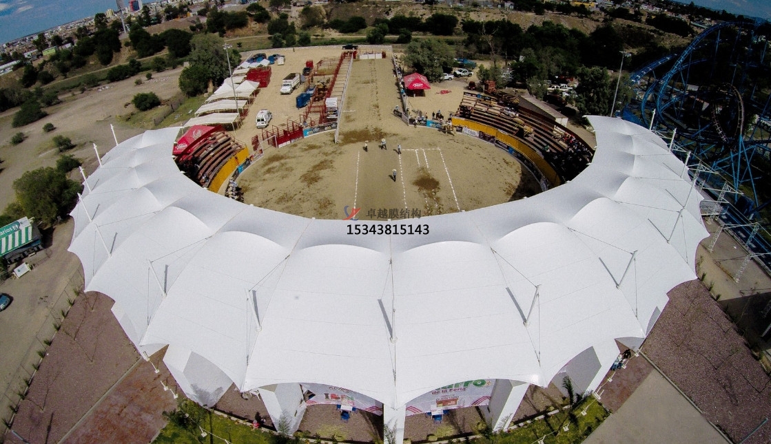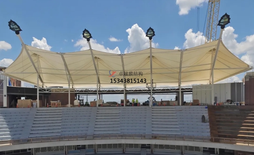 • 遮陽(yáng)擋雨:膜結(jié)構(gòu)罩棚能夠有效地遮擋陽(yáng)光和雨水,為觀眾提供一個(gè)干燥、舒適的觀賽環(huán)境。特別是在夏季高溫或雨季時(shí),罩棚的作用更加顯著。