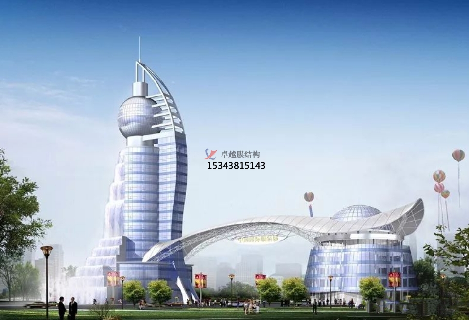 膜結(jié)構(gòu)建筑的突出特點之一就是它形狀的多樣性。由于膜結(jié)構(gòu)曲面所存在著無限的可能性,因此在實際的建筑創(chuàng)造過程中,可以為豐富多彩的空間體系的產(chǎn)生創(chuàng)造條件。近年來