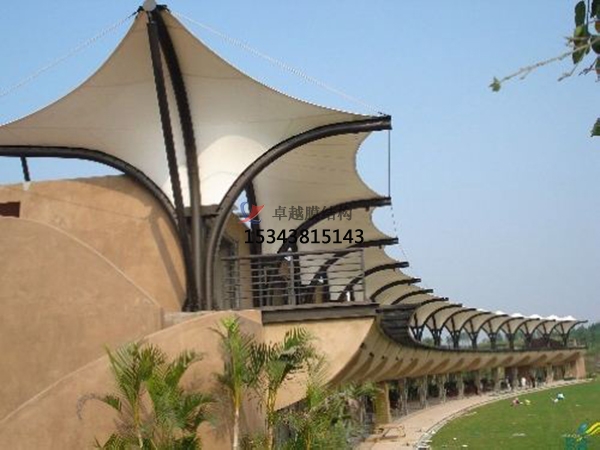 (7)膜結(jié)構(gòu)適用廣。從氣候條件看,膜結(jié)構(gòu)建筑適用的地域廣闊;從規(guī)模上看,可以小到單人帳篷、花園小品,大到覆蓋幾萬、幾十萬平方米的建筑。甚至有人曾設(shè)想覆蓋一個(gè)小城,實(shí)現(xiàn)人造自然。