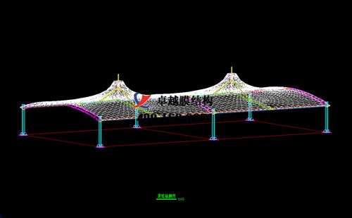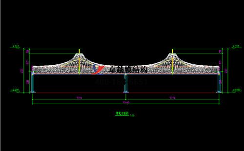 本工程膜材采用白色高端國產(chǎn)星益達(dá)PVDF高自潔環(huán)保建筑膜材,鋼結(jié)構(gòu)采用更好的標(biāo)準(zhǔn)Q235B鋼材,表面采用酚醛底漆處理,面漆采用白色鋼結(jié)構(gòu)專用快干磁漆。