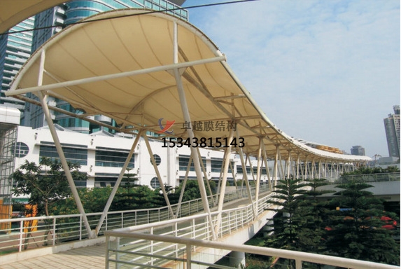 膜結(jié)構(gòu)遮陽棚造型設(shè)計:其造型設(shè)計主要從整體風(fēng)格和形狀設(shè)計兩方面出發(fā)。其中整體風(fēng)格是指根據(jù)使用場所和客戶喜好確定遮陽棚的整體風(fēng)格,如簡約現(xiàn)代、歐式古典、自然生態(tài)等。可以通過調(diào)整遮陽棚的形狀、線條、色彩來實現(xiàn)不同的風(fēng)格效果。形狀設(shè)計,膜結(jié)構(gòu)遮陽棚的形狀豐富多樣,常見的有平頂式、坡頂式、拱形式、傘形式等。還可以根據(jù)場地的特殊要求和創(chuàng)意設(shè)計出獨特的形狀,如仿生形、自由曲線形等,以增加遮陽棚的美觀性和獨特性。