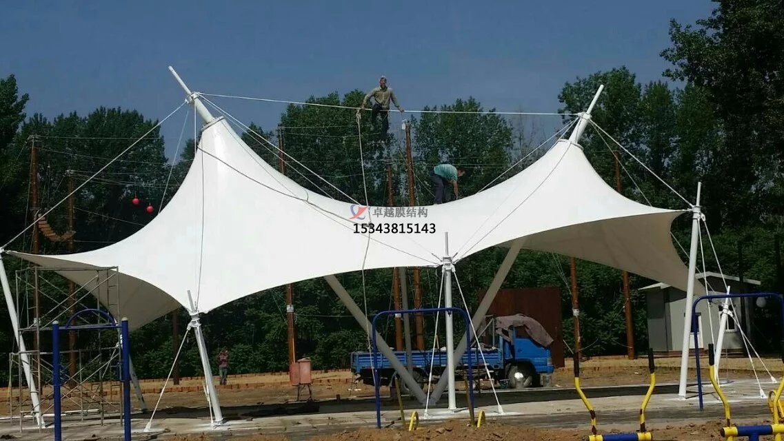 膜結(jié)構(gòu)遮陽棚前期規(guī)劃:膜結(jié)構(gòu)遮陽棚前期需要根據(jù)使用需求、環(huán)境因素來做規(guī)劃。明確遮陽棚的使用場景和功能需求,例如是用于商業(yè)廣場、停車場、體育場,還是私人庭院等。不同的使用場景對遮陽棚的規(guī)模、形式和功能有不同的要求。考慮遮陽棚所處的地理位置、氣候條件等。如在多風(fēng)地區(qū),要加強(qiáng)結(jié)構(gòu)的抗風(fēng)設(shè)計;在陽光強(qiáng)烈的地區(qū),需選擇具有良好遮陽和隔熱性能的膜材。同時,還需考慮周邊的建筑風(fēng)格和景觀環(huán)境,使遮陽棚與周圍環(huán)境相協(xié)調(diào)。
