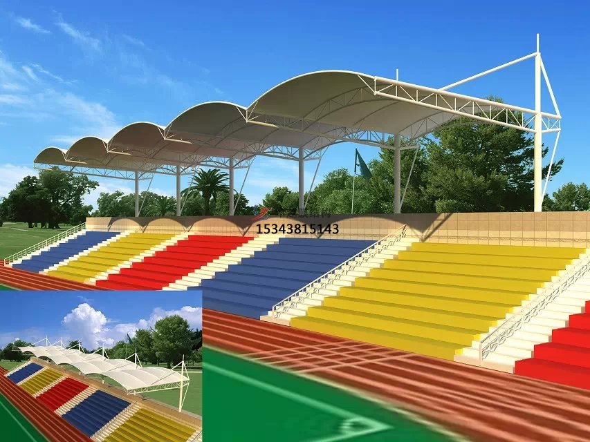 張拉膜看臺主要用于各類地方體育場主席臺雨棚,各類學校體育場看臺雨棚遮蓋,我公司是國內較早從事大懸挑張拉膜結構看臺設計施工的專業(yè)廠家,下面介紹一下我們在荊門周邊縣市完工的一些張拉膜看臺設計施工案例,我公司先后在荊門周邊承接了荊門市東寶中學看臺雨棚、荊門職業(yè)學院張拉膜張拉膜看臺罩棚、荊門市第中學張拉膜看臺遮陽棚張拉膜看臺遮陽棚等設計施工項目,簡介如下: