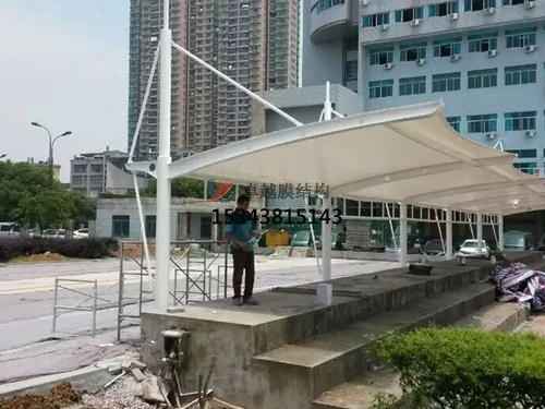 膜結(jié)構(gòu)的穩(wěn)定性取決于膜結(jié)構(gòu)中預(yù)應(yīng)力的保持,預(yù)應(yīng)力水平影響負(fù)載薄膜的變形。由于商業(yè)廣場(chǎng)雨棚搭建是負(fù)載的連續(xù)作用下松,預(yù)應(yīng)力使用過(guò)程中的膜的變化,為了處理下垂和使用所述膜的過(guò)程中發(fā)生蠕變和安裝過(guò)程中加入具有高的初始應(yīng)力,也有在使用后進(jìn)行二次張力的兩種方式。