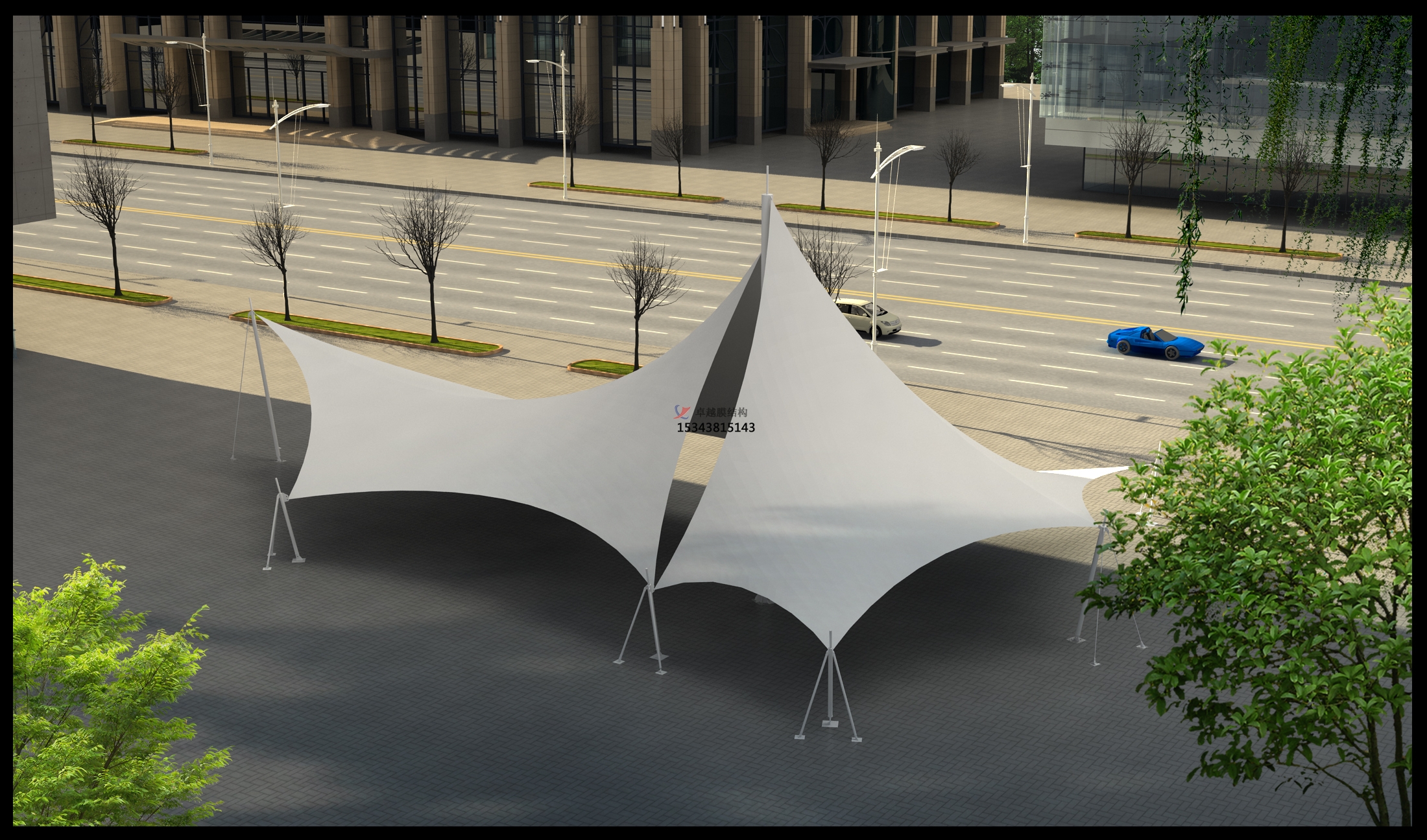結(jié)合整體環(huán)境,建造出標(biāo)志性的形象工程,并且實用性強、應(yīng)用領(lǐng)域廣泛。既可應(yīng)用了大型公共設(shè)施,如體育場館的屋頂系統(tǒng)、機場大廳、展覽中心、購物中心、停車場、站臺設(shè)施等。又可應(yīng)用于休閑設(shè)施、工業(yè)設(shè)施、入口廊道以及標(biāo)志性或景觀性的建筑、小品等。
