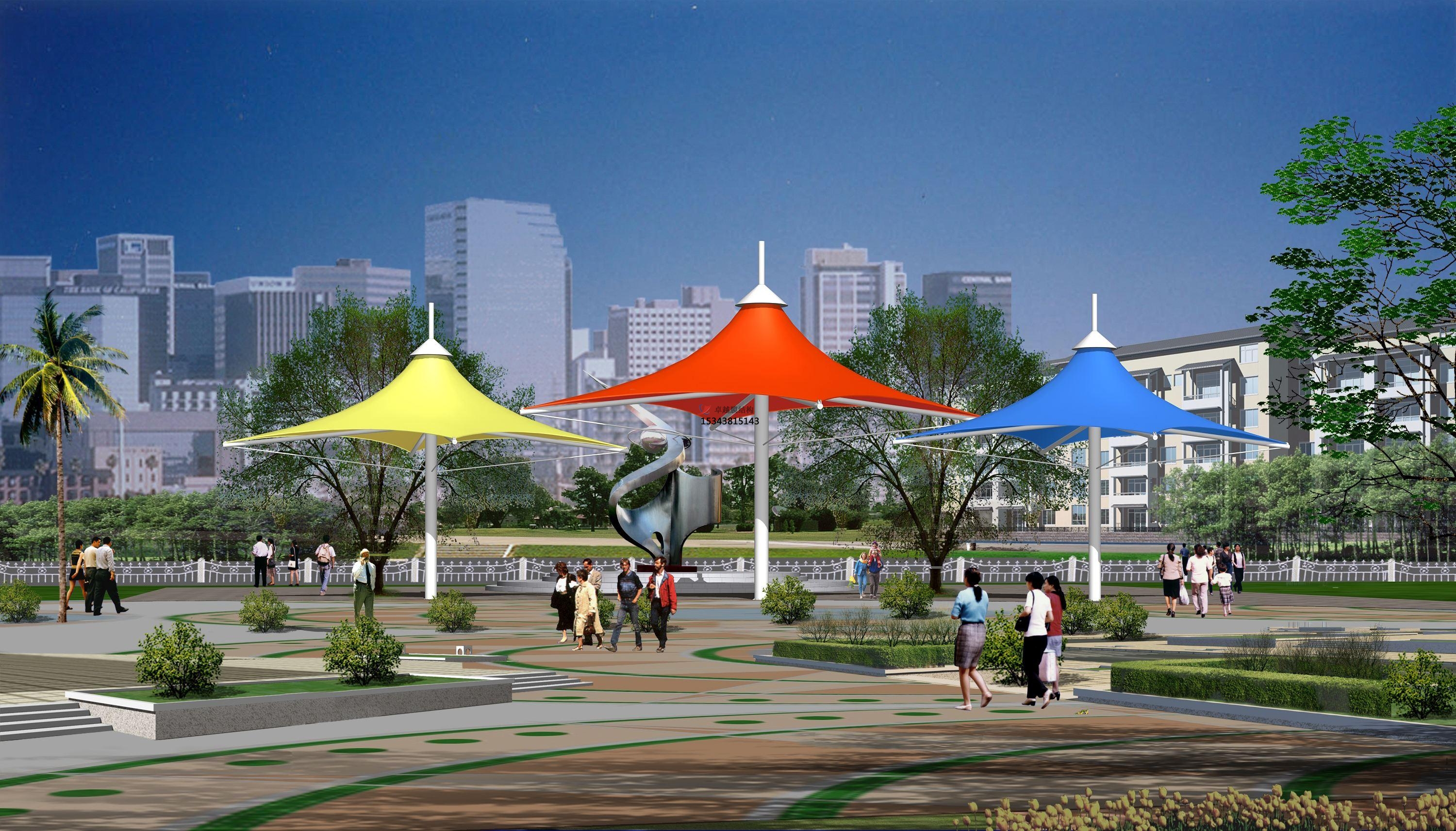 一,景觀膜結(jié)構(gòu)遮陽棚外型多變;膜材的支撐結(jié)構(gòu)和柔性膜材使修建物外型愈加多元化,新穎漂亮,一起表現(xiàn)結(jié)構(gòu)之美,表明且顏色豐厚,可發(fā)明更自在的景觀膜結(jié)構(gòu)遮陽棚修建形體和更豐厚的修建言語。