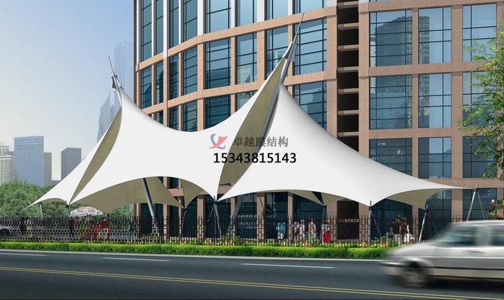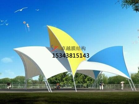2.PVDF膜結(jié)構(gòu)景觀:PVDF是二氟化樹(shù)脂(PolyvinylideneFluoride)的略稱,在PVC膜表面處理上加以PVDF樹(shù)脂涂層的材料稱為PVDF膜。PVDF膜與一般的PVC膜比較,耐用年限改善至7~10年左右。