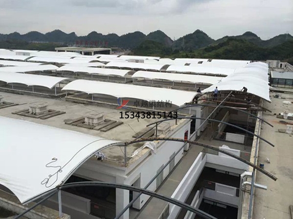 材料用量的差異化。不同的膜結(jié)構(gòu)車棚安裝方案,在材料的用量上有很大差別,比如:吊帽膜結(jié)構(gòu)車棚的材料用量比普通7字形多一倍。