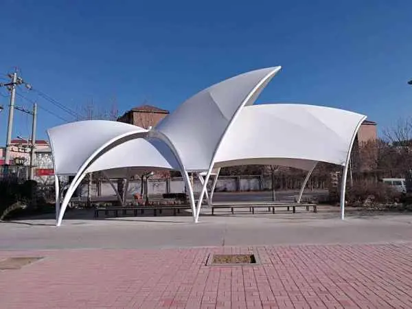 1.藝術(shù)性:膜結(jié)構(gòu)產(chǎn)品以造型學(xué)、色彩學(xué)為依托,可結(jié)合自然條件及民族風(fēng)情,根據(jù)建筑師的創(chuàng)意建造出傳統(tǒng)建筑難以實(shí)現(xiàn)的曲線及造型。