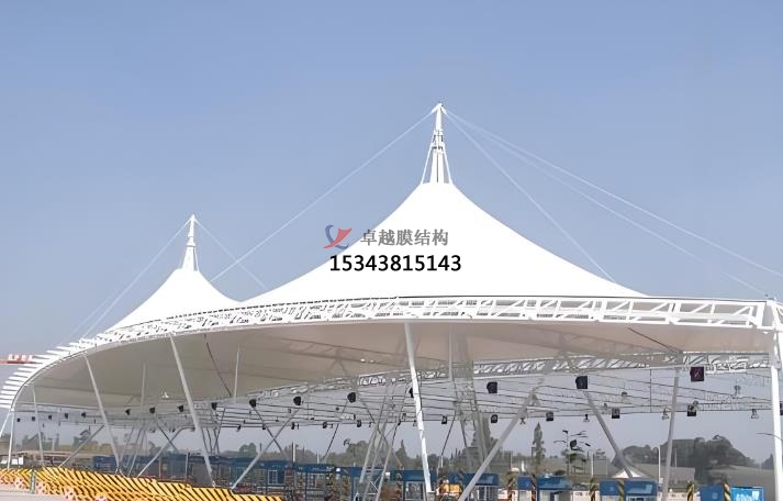 膜結(jié)構(gòu)出入口類型:地下車庫膜結(jié)構(gòu)出入口,大門膜結(jié)構(gòu)出入口,停車場出入口膜結(jié)構(gòu)收費亭。地下車庫膜結(jié)構(gòu)出入口的功能是替代傳統(tǒng)雨棚,遮陽擋雨,提升車庫實用性。優(yōu)點則是可拆裝重復(fù)使用(綠色環(huán)保)、自潔性強(雨水沖洗即可清潔)、抗老化(壽命 15 年以上),主要應(yīng)用場景為住宅、商場、交通樞紐的地下車庫。大門膜結(jié)構(gòu)出入口的功能是兼顧遮陽防雨與景觀裝飾,提升建筑形象。優(yōu)點是造型新穎(如流線型、雕塑感設(shè)計)、透光性好(減少照明能耗)、自重輕(抗震性強)。應(yīng)用場景通常是小區(qū)、景區(qū)、學(xué)校、商業(yè)綜合體的主入口。停車場出入口膜結(jié)構(gòu)收費亭的功能是作為收費管理設(shè)施,兼具功能性與美觀性,優(yōu)點則是施工快捷、大跨度無柱設(shè)計、抗風(fēng)抗雪能力強。應(yīng)用場景通常是公路收費站、景區(qū)停車場、物流園區(qū)。