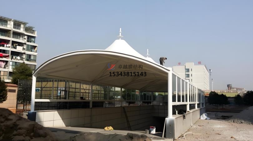 膜結(jié)構(gòu)出入口是一種以高強度膜材料與支撐結(jié)構(gòu)(鋼索、鋼架等)結(jié)合的建筑形式,具有輕盈、美觀、耐用等特點,廣泛應(yīng)用于各種場所的建筑形式,主要用于提供遮陽、遮雨的功能,同時具有較高的觀賞性和藝術(shù)感。