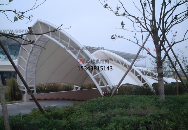 膜結(jié)構(gòu)出入口優(yōu)勢總結(jié):膜結(jié)構(gòu)的外觀和造型可以創(chuàng)造出各種獨特的造型,如弧形、波浪形、拱形等,使出入口具有較高的觀賞性和藝術(shù)感。膜材料通常具有較好的透光性,可以增加出入口的采光,使內(nèi)部空間更加明亮。膜結(jié)構(gòu)具備足夠的穩(wěn)定性和耐久性,以承受風(fēng)、雨、雪等自然環(huán)境的影響。由于出入口需要保證人員和車輛的安全通行,所以膜結(jié)構(gòu)具備防滑、防碰撞等安全設(shè)計??紤]到人們的使用需求,膜結(jié)構(gòu)通常具有人性化設(shè)計,出入口的寬度、高度、坡度等符合人體工程學(xué)原理,方便人們進(jìn)出。通過適當(dāng)?shù)恼彰髟O(shè)計,可以使膜結(jié)構(gòu)出入口在夜晚呈現(xiàn)出獨特的視覺效果,增加夜間的辨識度和美感。膜結(jié)構(gòu)出入口的設(shè)計多樣化,可以與周邊建筑和環(huán)境相協(xié)調(diào),融入整體景觀。膜結(jié)構(gòu)出入口的設(shè)計還可以結(jié)合具體的文化元素和現(xiàn)代感,如“城市之窗”造型、折紙造型、陶器造型等,使出入口不僅實用,還能成為城市景觀的一部分。