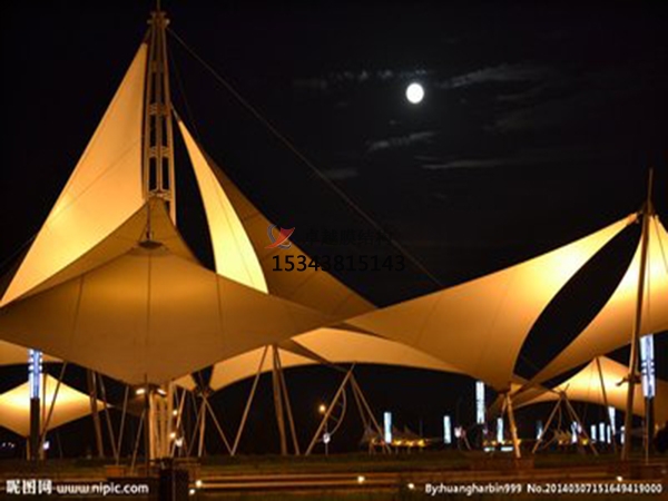 3.因?yàn)槟げ牡淖陨硖匦?,在燈火的照射下能?gòu)成艷麗繽紛的美景。景象膜結(jié)構(gòu)它不僅能夠供給遮陽擋雨的空間,更因?yàn)檫@種輕盈優(yōu)美的造型能給人們帶來時髦、輕松的休閑感受。