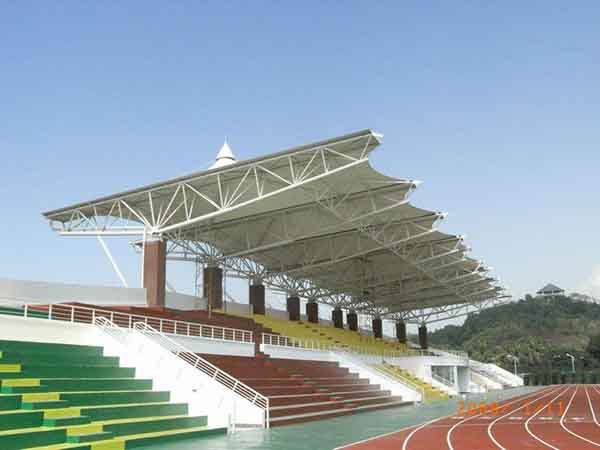 張拉膜看臺主要用于各類地方體育場主席臺雨棚,各類學(xué)校體育場看臺雨棚遮蓋,我公司是國內(nèi)較早從事大懸挑張拉膜結(jié)構(gòu)看臺設(shè)計施工的專業(yè)廠家,下面介紹一下我們在金華市周邊縣市完工的一些張拉膜看臺設(shè)計施工案例,我公司先后在金華周邊承接了金華職業(yè)技術(shù)學(xué)院張拉膜看臺雨棚、浙江師范大學(xué)張拉膜看臺罩棚、浙江橫店影視職業(yè)學(xué)院張拉膜看臺遮陽棚等設(shè)計施工項目,簡介如下: