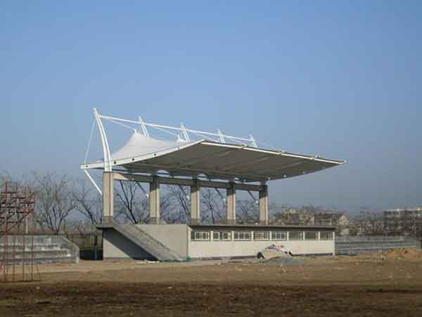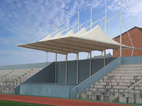 張拉膜看臺主要用于各類地方體育場主席臺雨棚,各類學校體育場看臺雨棚遮蓋,我公司是國內較早從事大懸挑張拉膜結構看臺設計施工的專業(yè)廠家,下面介紹一下我們在紹興市周邊縣市完工的一些張拉膜看臺設計施工案例,我公司先后在紹興周邊承接了紹興文理學院張拉膜看臺雨棚、紹興職業(yè)技術學院張拉膜看臺罩棚、浙江農(nóng)業(yè)商貿職業(yè)學院張拉膜看臺遮陽棚等設計施工項目,簡介如下: