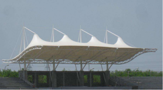 工程結(jié)構(gòu)形式:骨架式膜結(jié)構(gòu)看臺(tái),自然排水。