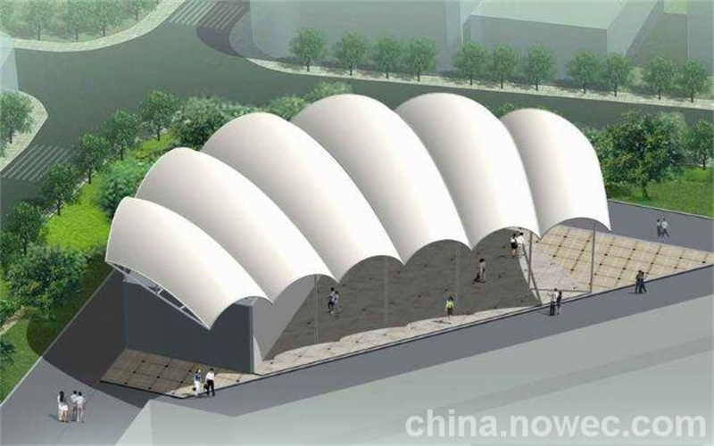 小型景觀膜結(jié)構(gòu)建筑無需考慮消防防火設計,但大型公共膜結(jié)構(gòu)建筑必須明確防火設計思想。針對膜結(jié)構(gòu)建筑的特點,必須明確選用膜結(jié)構(gòu)材料的防火等級。 當膜材距離樓面、地面約6.0m以上時,膜結(jié)構(gòu)材料的防火可不要求。封閉膜結(jié)構(gòu)建筑空間可采用自動噴淋系統(tǒng)。由于膜結(jié)構(gòu)建筑的大跨、無構(gòu)件支承空間大,噴淋系統(tǒng)難以滿足規(guī)范平面距離、高度要求。膜結(jié)構(gòu)建筑支承體系的防火應根據(jù)膜結(jié)構(gòu)建筑總體設計做出明確要求,在距離地面3m高程以內(nèi)支承構(gòu)件(鋼結(jié)構(gòu)構(gòu)件、木構(gòu)件、鋁構(gòu)件等)必須防火,給出防火做法和耐火時間。3m高以上支承構(gòu)件可不要求或做低一級的防火要求。