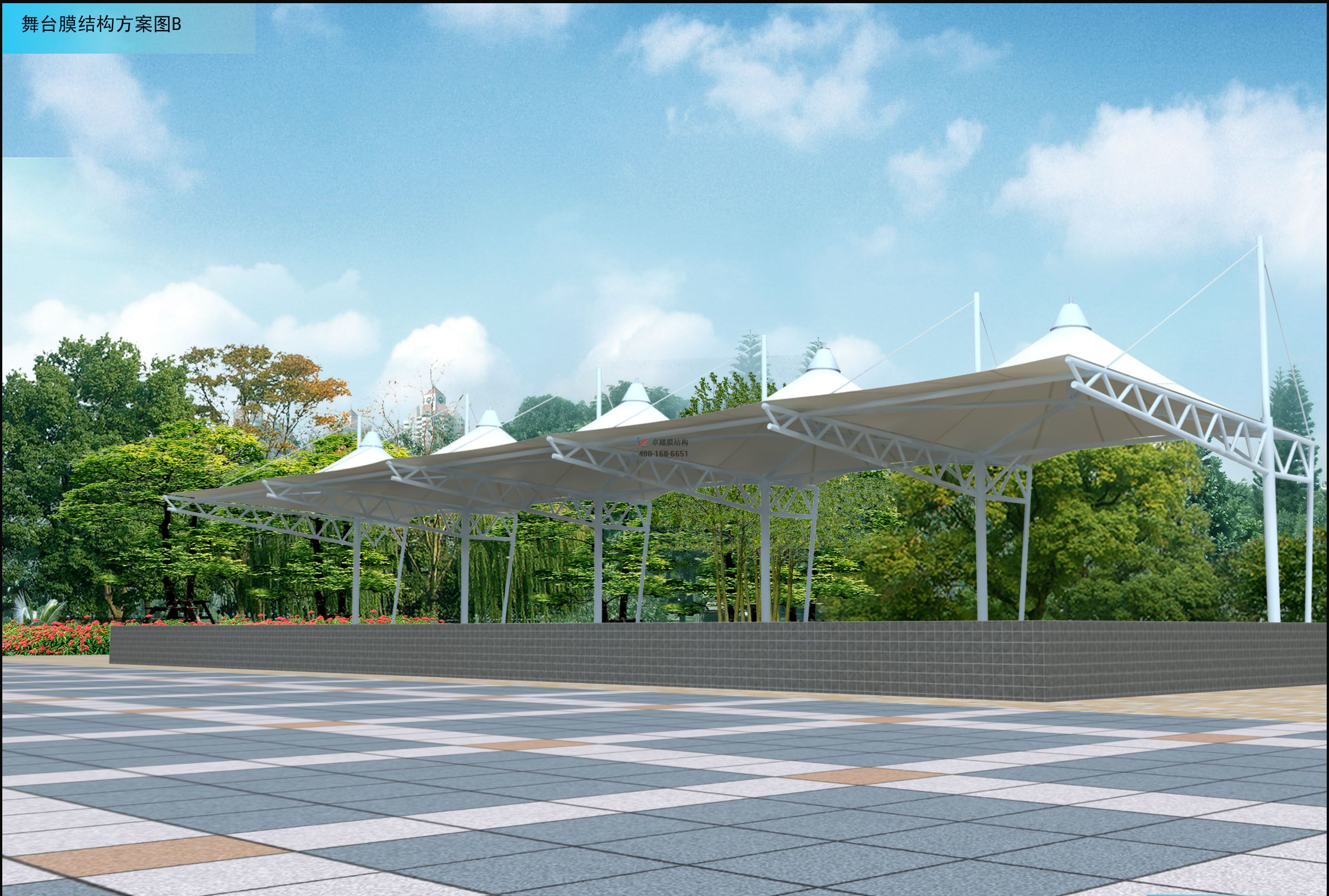 膜結(jié)構(gòu)舞臺(tái)主要應(yīng)用于各類體育場、廣場、公園等,我司是具有獨(dú)立法人資格,獨(dú)立設(shè)計(jì)施工、獨(dú)立生產(chǎn)加工