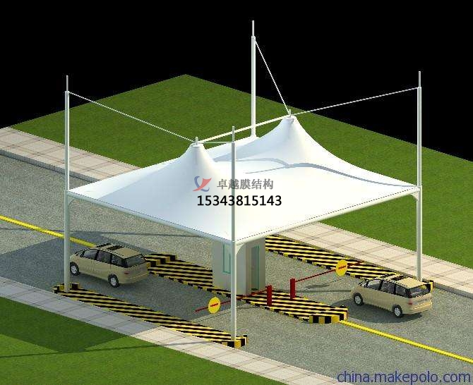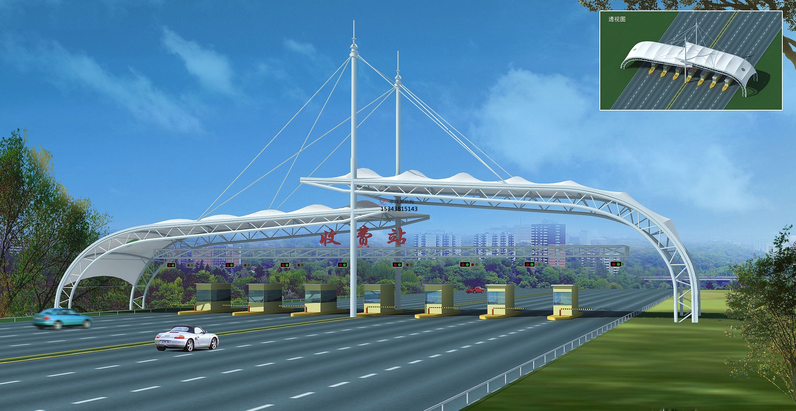 收費站膜結(jié)構(gòu)的弧形線條是在體現(xiàn)膜材料得柔性性能的同時是充分得展現(xiàn)了膜結(jié)構(gòu)建筑的優(yōu)雅內(nèi)涵,其柔美特點與高速路的剛性與速度特點形成了鮮明的對比。同時,收費站膜結(jié)構(gòu)外形也延續(xù)了中國建筑中對稱的傳統(tǒng)特點,在視覺上也滿足了大眾的審美觀。