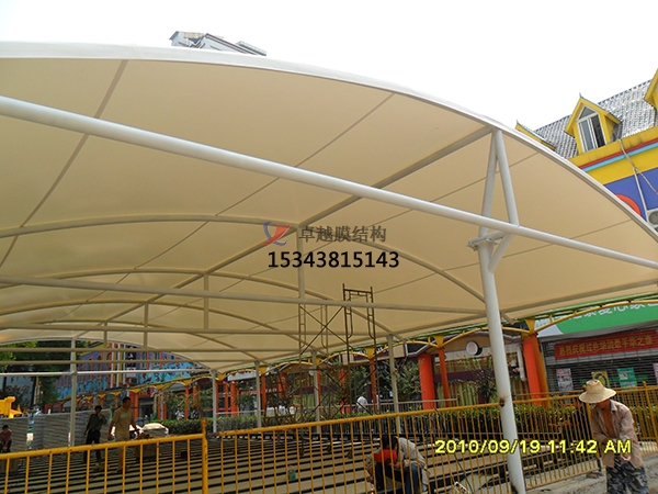 其三、藝術(shù)性:除了一般雨蓬不行比較的有用、經(jīng)用、遮風(fēng)擋雨的功用外,膜結(jié)構(gòu)工程更是一座雕塑 ,一件藝術(shù)品,給人美的視覺(jué)享受。其柔美,其曲線(xiàn),其剛?cè)岵?jì),其豐富外型,其潔白無(wú)瑕,讓人眼前-亮,回味悠長(zhǎng)。