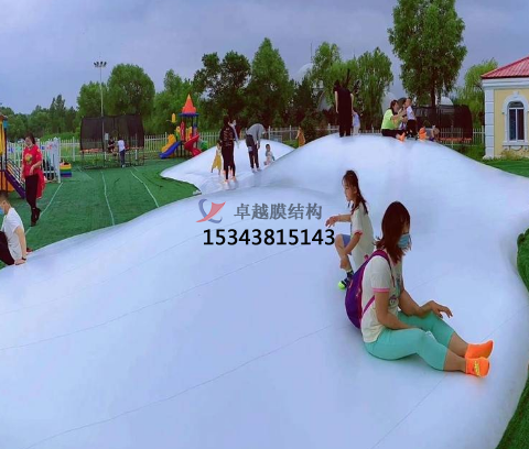 蹦蹦云的外膜材質(zhì)選用耐磨、抗陽(yáng)光、自潔的膜材,保證外膜長(zhǎng)期被人踩踏、暴曬、彈跳后,再次清洗后依然清潔。產(chǎn)品可長(zhǎng)久性的固定在地面之上,拆卸維修方便。