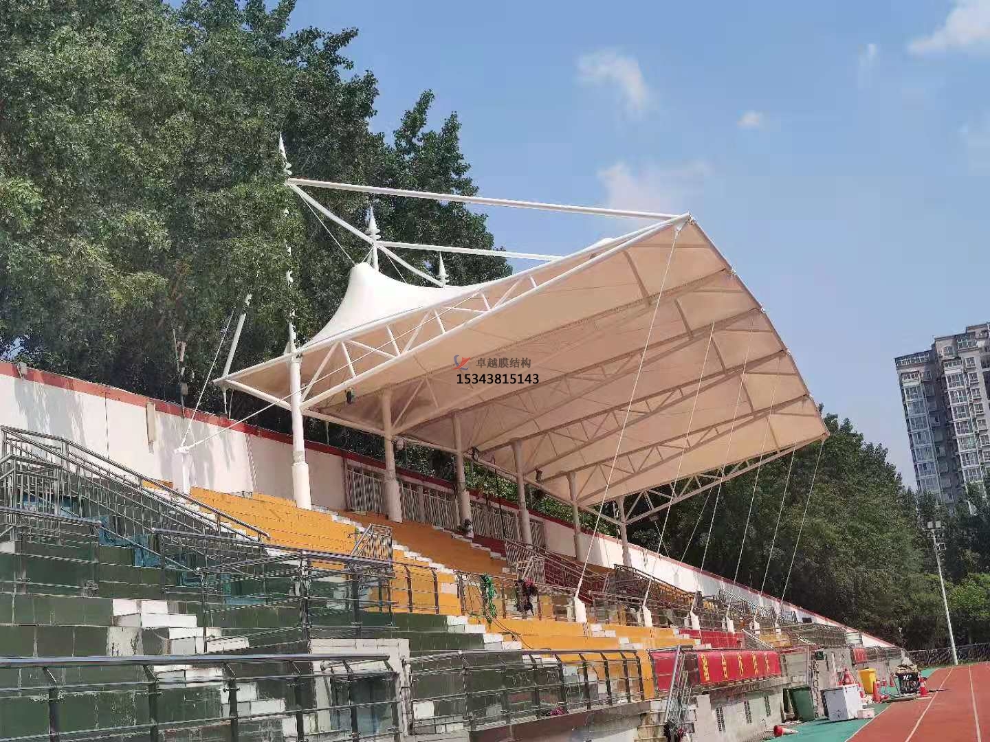 膜結(jié)構(gòu)體育看臺(tái)特點(diǎn):經(jīng)濟(jì)實(shí)用美觀,鋼材+鋼索+高強(qiáng)度膜材;大跨度無遮擋視覺空間覆蓋;外觀新穎優(yōu)美而精致,設(shè)計(jì)無限,時(shí)尚環(huán)保理念;遮陽避雨,抗震阻燃,防紫外線;結(jié)構(gòu)堅(jiān)固,高強(qiáng)可靠的抗負(fù)荷載能力;完美的細(xì)部處理,優(yōu)質(zhì)齊全的配件附件;高效的防腐,防塵,自潔功能;服務(wù)完善周全,現(xiàn)場(chǎng)施工過程簡便,快捷。