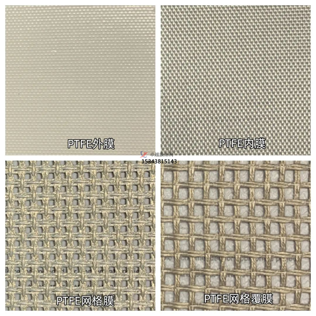 PTFE網(wǎng)格膜覆膜,是在PTFE網(wǎng)格膜之上增加一層透明膜。目前市場上有PTFE透明薄膜、FEP、PE和ETFE透明膜(最貴)。特點是高透光、高透景,可防雨水。
