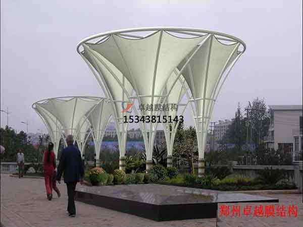 一個城市的中心區(qū)反映一個城市的地理風貌和民族風情,同時,也是一個城市文化發(fā)展程度的標志。而景觀設計要求其具有廣泛的可讀性、雅俗共賞,既有超凡脫俗的藝術價值,又能使大眾喜聞樂見與大眾息息相通。膜結構以其輕盈飄逸的造型、柔美并帶有力量的曲線和大跨度和大空間的鮮明個性和標識性,應用于城市小品設計中。