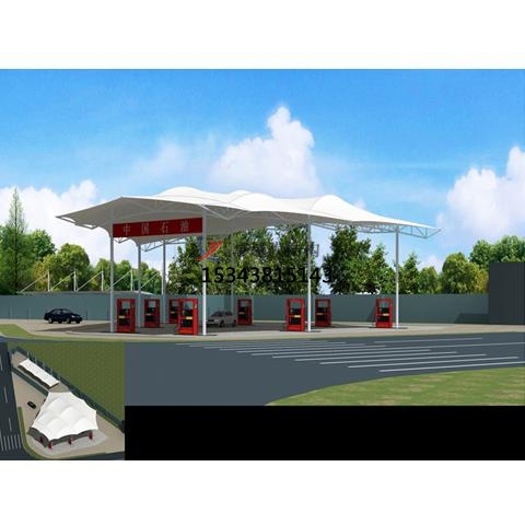 膜結(jié)構(gòu)加油站的柔性使其在任一荷載作用下均以有利的形狀承載。當(dāng)然,結(jié)構(gòu)的安置和形狀要根據(jù)荷載狀況來(lái)進(jìn)行規(guī)劃和調(diào)整。規(guī)劃要確何膜面與其輔助結(jié)構(gòu)和諧工作,以防止力在膜面或輔助結(jié)構(gòu)上會(huì)集而達(dá)結(jié)構(gòu)破壞的臨界值。