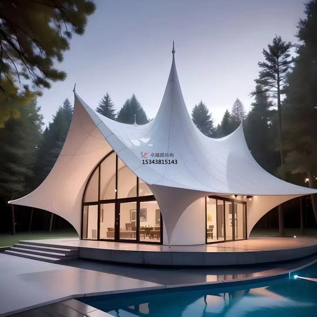 山區(qū)景觀中,膜結(jié)構(gòu)與山體輪廓契合無間。登山步道休息亭采用與山勢(shì)呼應(yīng)的造型,如順山勢(shì)起伏的波浪形或類山峰輪廓的三角形,仿若自然生長(zhǎng)于山體之中。膜材顏色選取與巖石、植被相近色調(diào),強(qiáng)化與自然景觀協(xié)調(diào)性。海濱景觀里,膜結(jié)構(gòu)與大海沙灘相互映襯。海邊沙灘浴場(chǎng)遮陽棚以通透膜材構(gòu)建,人們遮陽同時(shí)飽覽海景,輕盈造型與海浪動(dòng)態(tài)呼應(yīng),海風(fēng)吹拂下?lián)u曳生韻,成為海濱景觀重要組成部分。