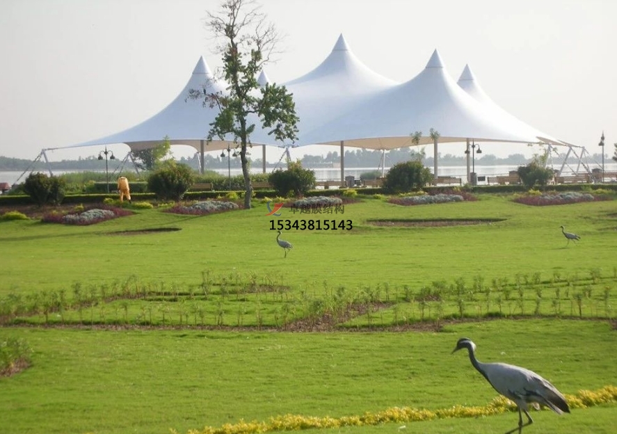 膜結(jié)構(gòu)通透特質(zhì)使區(qū)域既相對(duì)獨(dú)立又彼此關(guān)聯(lián),游客游覽時(shí)感受空間轉(zhuǎn)換變化,增添景觀趣味性與層次感。同時(shí),膜結(jié)構(gòu)作為景觀視覺焦點(diǎn),在空曠草坪或廣場(chǎng)上,獨(dú)特造型的景觀亭或雕塑吸引目光,使景觀布局更趨均衡且富有吸引力。