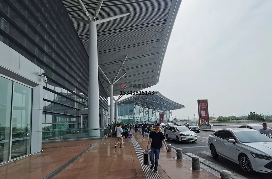 機(jī)場(chǎng)膜結(jié)構(gòu)多用于機(jī)場(chǎng)航站樓的雨棚、采光帶、室內(nèi)吊頂?shù)染植课恢茫瑸闄C(jī)場(chǎng)建筑增添現(xiàn)代感和藝術(shù)氣息。
