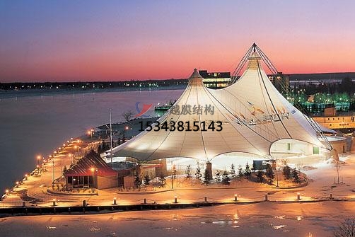 在陽(yáng)光的照射下,PTFE膜結(jié)構(gòu)能夠發(fā)出自然的散光,不需要電燈,到了晚上點(diǎn)上燈后膜結(jié)構(gòu)建筑會(huì)呈現(xiàn)出夢(mèng)幻般的效果。