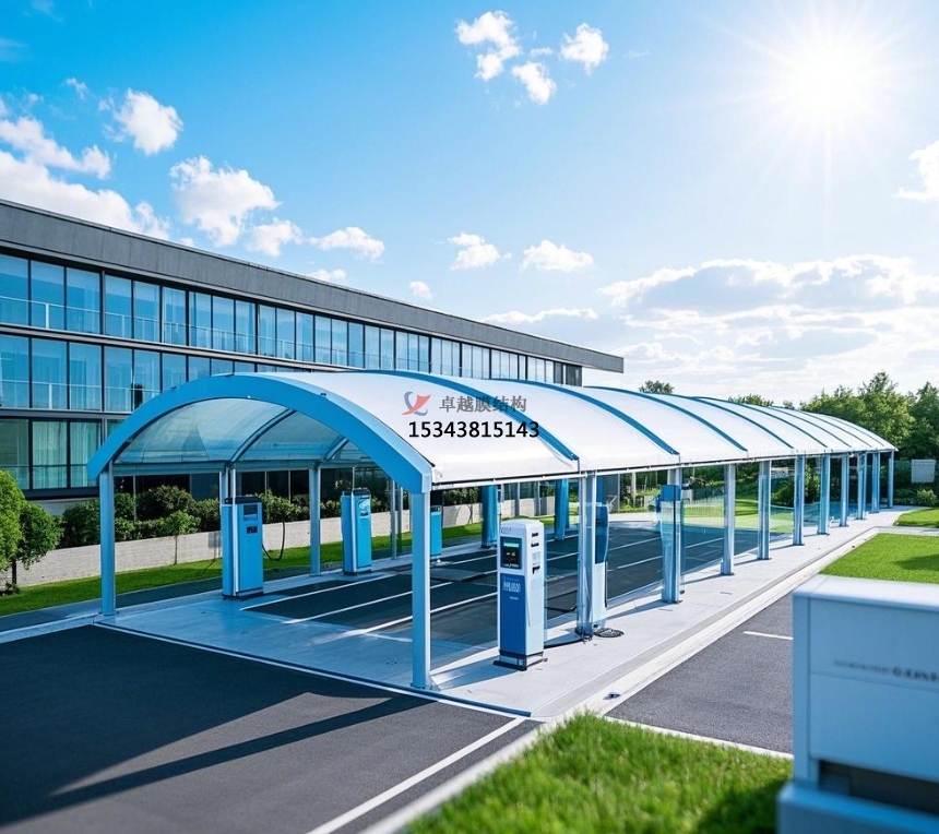 在全球大力推進(jìn)新能源汽車開展的浪潮中,充電站作為關(guān)鍵配套設(shè)施,其建造正如火如荼地進(jìn)行。而充電站膜結(jié)構(gòu)罩棚,憑仗本身共同優(yōu)勢(shì),逐漸成為很多充電站建造的理想挑選,為新能源汽車的充電進(jìn)程供給了牢靠保證,一起也為城市增添了異樣的現(xiàn)代氣味。