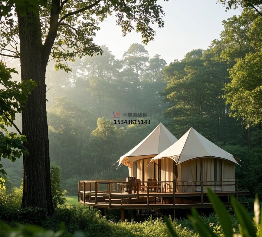 帳篷酒店膜結(jié)構(gòu)在各類旅游場景中廣泛應(yīng)用。在山地旅游景區(qū),膜結(jié)構(gòu)帳篷可依山勢而建,巧妙融入自然山林景觀,為游客提供親近山林、聆聽鳥鳴的住宿體驗;海濱度假勝地,帳篷酒店膜結(jié)構(gòu)憑借其輕盈造型與抗風(fēng)性能,矗立在沙灘旁,讓游客伴著海浪聲入眠;在草原旅游區(qū),大型膜結(jié)構(gòu)帳篷酒店可作為綜合性住宿場所,內(nèi)部設(shè)置多個房間與公共區(qū)域,既能滿足游客住宿需求,又能舉辦篝火晚會等特色活動,豐富游客的草原之旅。