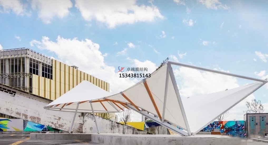 膜結(jié)構(gòu)景觀的膜材料可以透光或反射光線,創(chuàng)造出豐富的光影效果,使得建筑物在不同的時(shí)間和角度呈現(xiàn)出不同的視覺效果。膜結(jié)構(gòu)景觀常用的膜材料是PTFE膜材料和PVC膜材料。膜結(jié)構(gòu)景觀棚具有優(yōu)異的抗拉強(qiáng)度和耐候性能,能夠承受風(fēng)力和其他天氣因素的沖擊。