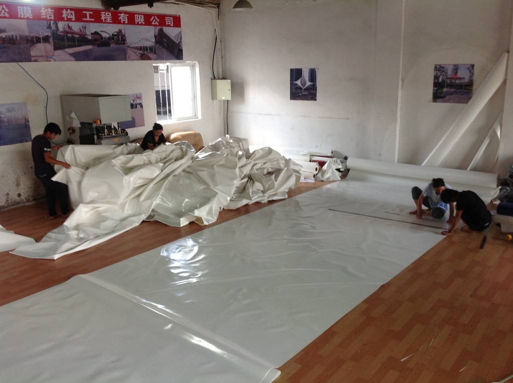 除找形外,膜結構設計的另一大特點是需要進行裁剪設計,即在完成找形、荷載分析和構件設計(含膜材、索、支承鋼結構的設計等)并獲批準后,要購買膜材料,進行裁剪設計,加工制作膜面。本文臨朐永鑠膜結構工程將就膜結構加工制作階段的工作內容,如裁剪設計的原則、裁剪方法、膜材連接方法與接縫設計、裁剪加工圖、膜面制作工序與質量要求等,展開論述。