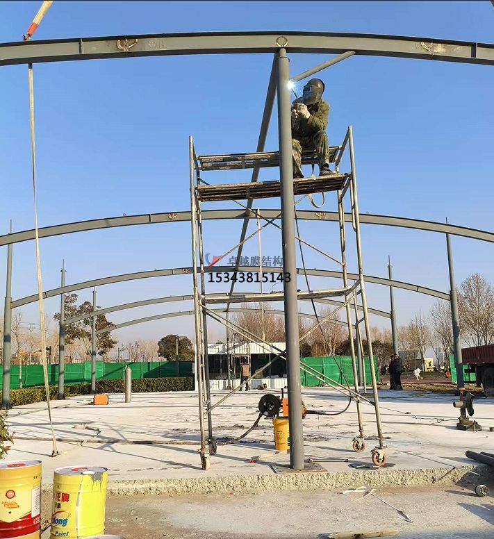 3?、經(jīng)濟(jì)性和施工效率?:膜結(jié)構(gòu)車棚的建造費(fèi)用較低,施工周期短。由于其材料輕盈,不需要大量的鋼架支撐,建造成本僅為傳統(tǒng)鋼結(jié)構(gòu)的1/3,極大地節(jié)省了施工時(shí)間和成本?。