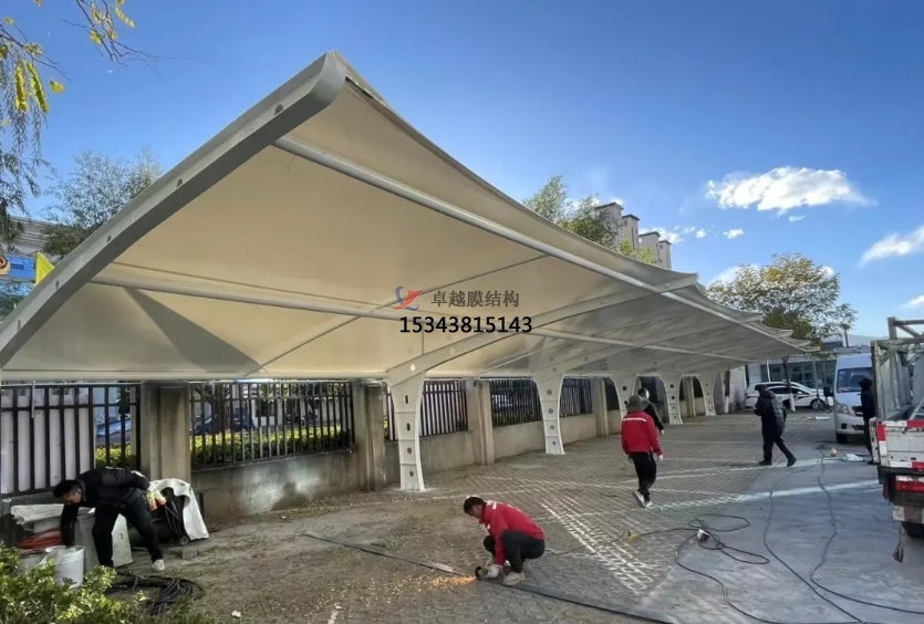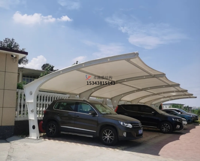 膜結(jié)構(gòu)停車(chē)棚自重輕,具有良好的受力特點(diǎn),是大跨度空間結(jié)構(gòu)的主要形式之一。它可以根據(jù)需要進(jìn)行不同的造型,并有較好的標(biāo)識(shí)招攬效果。膜結(jié)構(gòu)停車(chē)棚輕巧、別致的造型在停車(chē)場(chǎng)及候車(chē)廳的建設(shè)中擔(dān)當(dāng)了重要角色,滿足了人們對(duì)于防風(fēng)雨、防日曬等功能的需要。