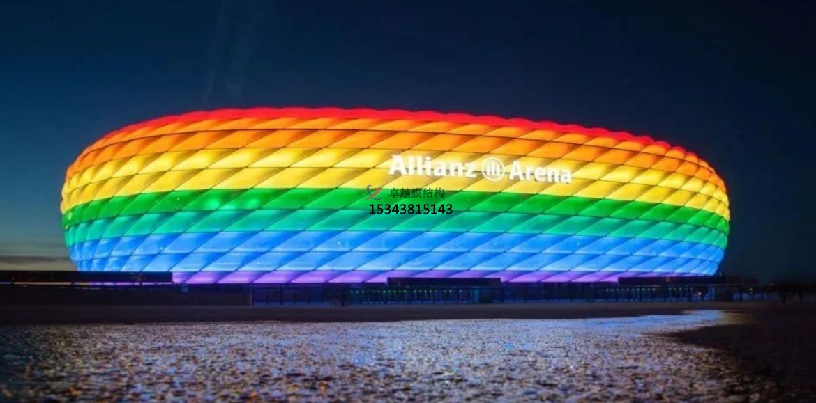 充氣膜結(jié)構(gòu):充氣膜結(jié)構(gòu)是在ETFE膜材料技術(shù)基礎(chǔ)上產(chǎn)生的,通過(guò)將兩層或多層膜通過(guò)熱熔焊接復(fù)合到一起,形成封閉的氣枕,并充入清潔干燥的空氣。這種結(jié)構(gòu)依靠膜材自身的強(qiáng)度和氣枕的內(nèi)壓來(lái)共同承擔(dān)外部荷載,具有輕質(zhì)、高效、環(huán)保等優(yōu)點(diǎn)。